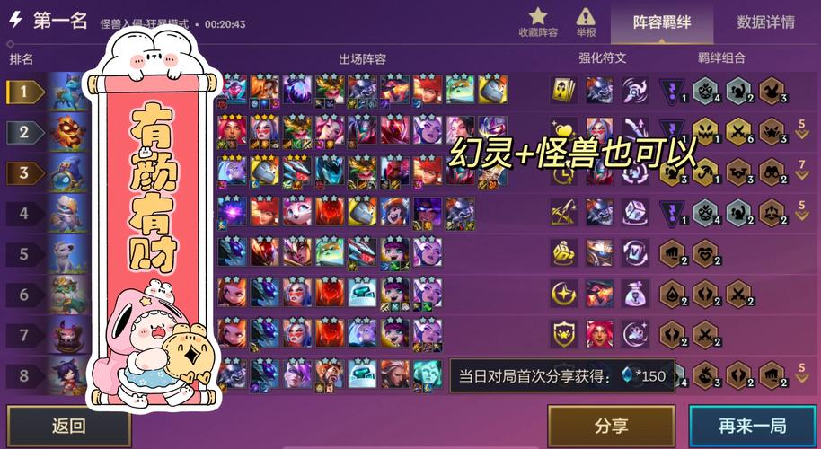 〖One〗、开局条件:出现蒙多强化时直接玩,装备优先选攻速装(如反曲弓)。前期策略:走连败路线,快速积累经济,优先合成羊刀。中期节奏:卡6级追三星蒙多,若纳尔数量多可一并追三。后期提升:三星后攒钱拉人口,开高主宰羁绊(8级上狗熊),补充控制与坦度。关键点:蒙多三星前需控制血量,避免被血入;后期依赖高主宰羁绊和装备质量取胜。