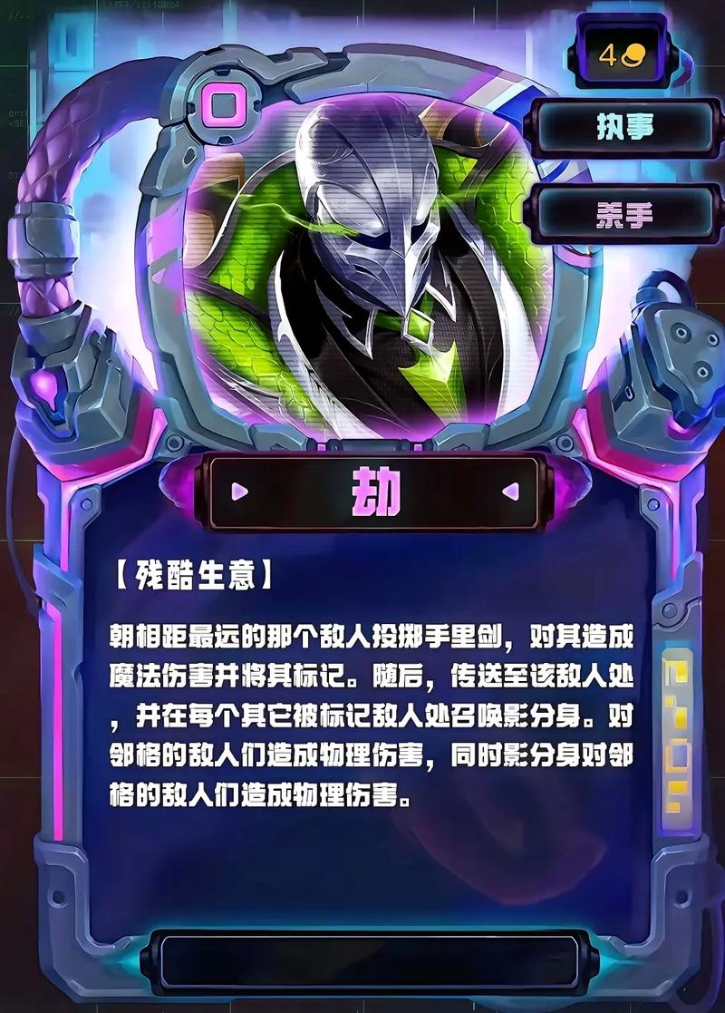 《金铲铲之战》S14扎克技能介绍:弈子介绍 名称:扎克(生化魔人)费用:5费标签:病毒技能介绍 技能名称:自复制恶意软件被动效果:当扎克的生命值降至25%时,他会分裂成两个拥有各自50%生命值的复制体。这一机制使得扎克在面临致命伤害时具有强大的生存能力,能够继续战斗并可能扭转战局。