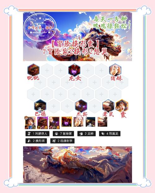 冒险家阵容 拼多多刀霞:以霞为核心,结合冒险家、怒翼龙等羁绊,提供稳定的输出和前排坦度。窃法巧手阵容 魔导凤凰:以艾尼维亚为核心,搭配法师、秘术师等羁绊,提供高额的法术伤害和持续作战能力。