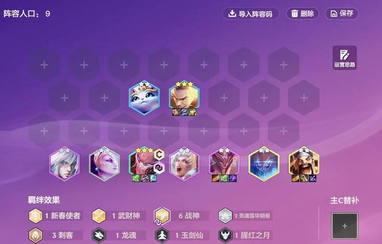 〖Four〗、裁决天使:天神天选情况下,霞开启6天神羁绊,输出爆炸。忍刺阿卡丽:高爆发刺客阵容,适合快速击败敌方后排。七法龙王:七法师羁绊提供高额法术输出,龙王为核心。十腥红:适合新手入门,构筑简单且强度高,可尝试多种大羁绊阵容。