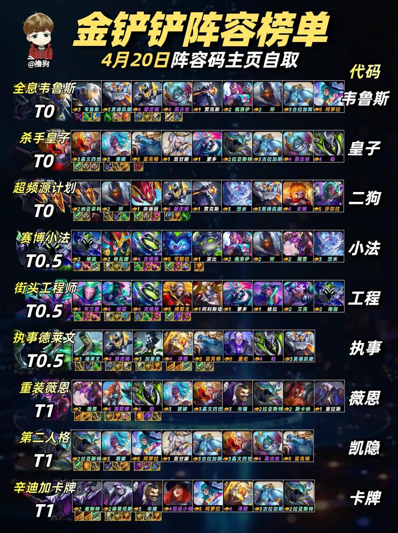 九五彗阵容 核心英雄:彗星(龙王)、安妮、孙悟空等。羁绊组合:主要依赖2天神、2武仙、2重骑兵等羁绊组合,形成强大的战斗体系。装备推荐:龙王作为核心,建议堆叠法师输出装,如法师帽、炽天使之拥、珠光护手或青龙刀,以提升其法术伤害能力。 天龙索拉卡阵容 英雄构成:卡兹克、墨菲特、妮蔻等。