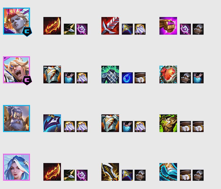 〖Two〗、英雄:蕾欧娜、皇子、佛耶戈、男枪(格雷福斯)、牛头(阿利斯塔)、厄斐琉斯、霞、阿萝拉、安妮。定位分工:前排坦克:蕾欧娜、牛头负责吸收伤害;皇子提供群体控制。 核心输出:佛耶戈(切入收割)、厄斐琉斯/霞(持续物理输出)、安妮(爆发魔法伤害)。