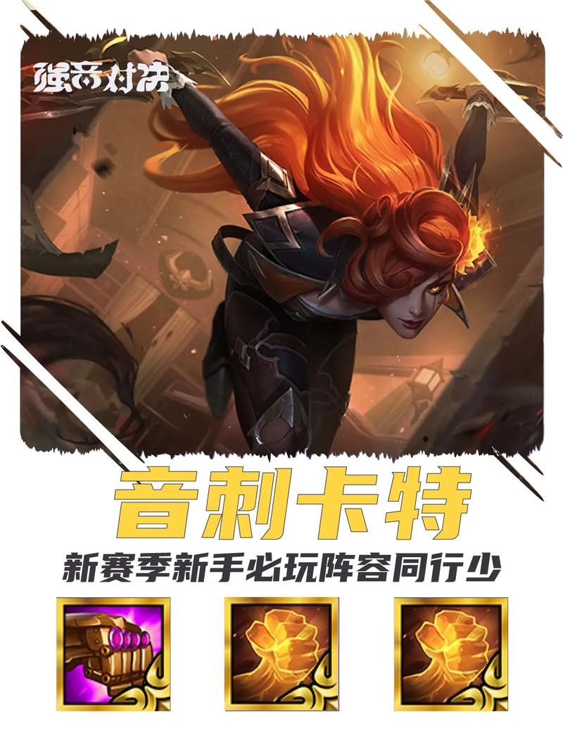阵容组成 金铲铲S10音浪刺客阵容主要由以下英雄组成:天选寡妇、卡特、永恩、劫、奇亚娜(组成6音浪刺客),妮蔻、莉莉娅(组成3K/DA),以及凯南(补出2护卫、2真伤),同时形成3超级粉丝阵容。这套阵容集输出、防御和控制于一体,攻防兼备。