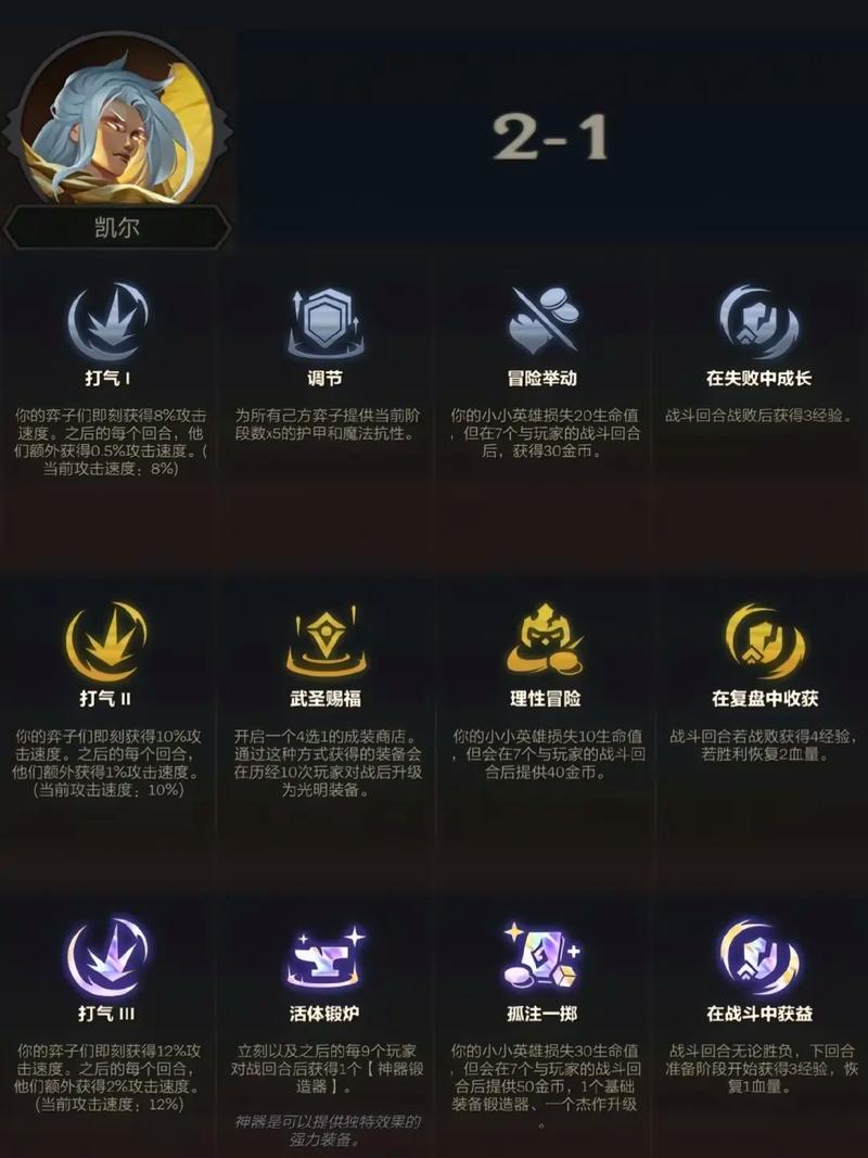 〖Five〗、在金铲铲之战中,强化符文的选取应根据游戏阶段和阵容需求进行合理规划。以下是一套较为通用的强化符文选取策略:2-1阶段:优先选取经济类强化符文。这一阶段,经济发育至关重要,能够帮助玩家更快地积累金币,为后续的高费卡刷新和阵容成型打下基础。