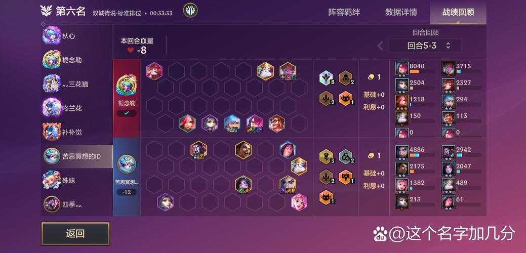 〖Three〗、阵容组成:“璐璐”“老鼠”“猪妹”“男刀”“大光头”“佐伊”“巴德”“小炮”“大头”。老鼠的【无尽,巨杀,羊刀】是必不可少的,前排猪妹装备传送门就够用了,站位图我放下面了,大家可以看看。