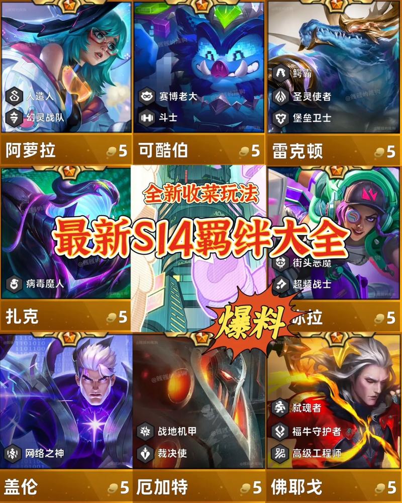 羁绊效果:获得独特装备,生命值和攻击速度随羁绊数量和装备数量提升。羁绊英雄:贾克斯、烬、纳尔、莫德凯撒、韦鲁斯、瑟庄妮、泽丽上面就是金铲铲之战S14赛季的所有羁绊及其对应英雄。
