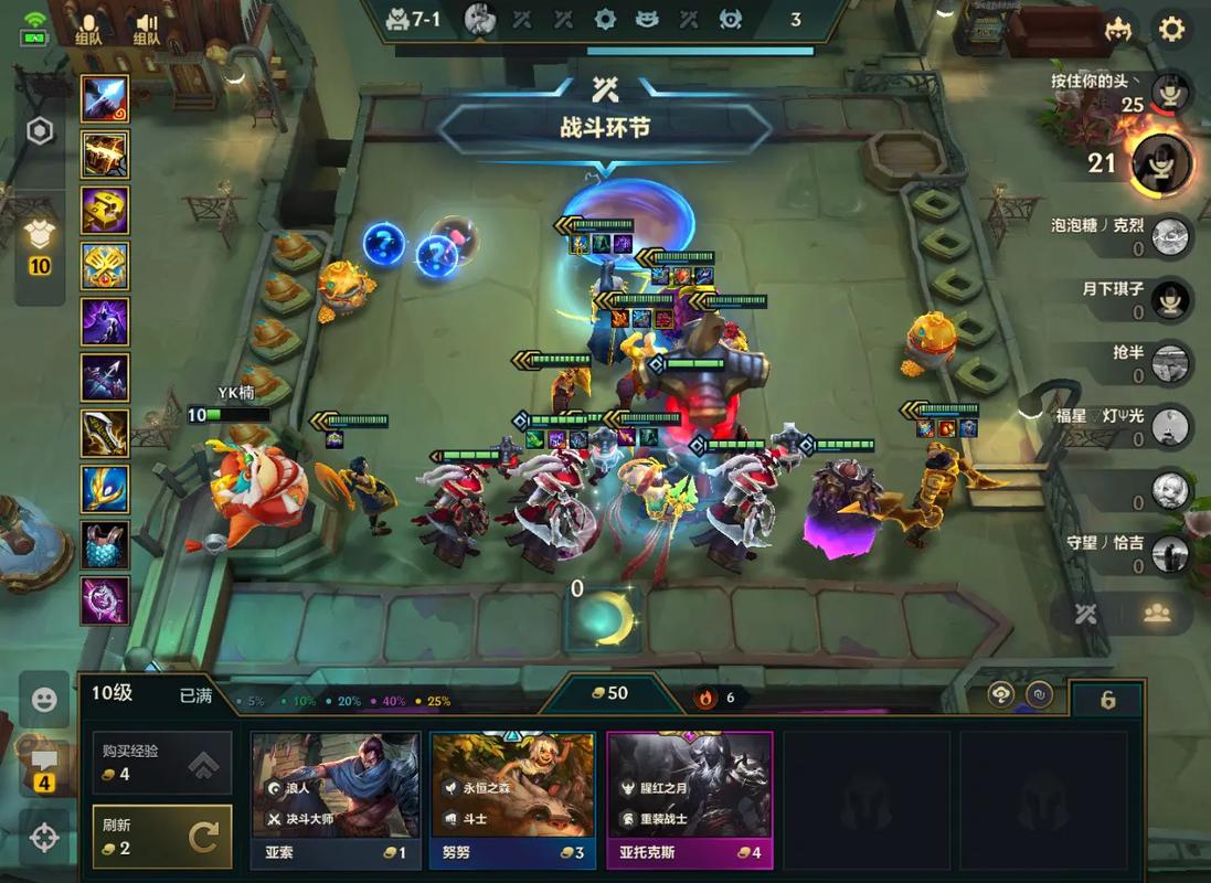 〖Four〗、开局选秀优先拳套和宝剑。连胜或连败都可,2-1升4人口,2-5升5人口,打工阵容3机甲最优。3-2升级6人口,大搜卡开3机甲+2黑客,追出德莱文2星。德莱文3星后升级7人口,添加派克/乐芙兰开3黑客羁绊。升8人口后大搜卡找到蕾欧娜与盖伦开5机甲阵容大成,或根据情况开3黑客+4护卫等羁绊。