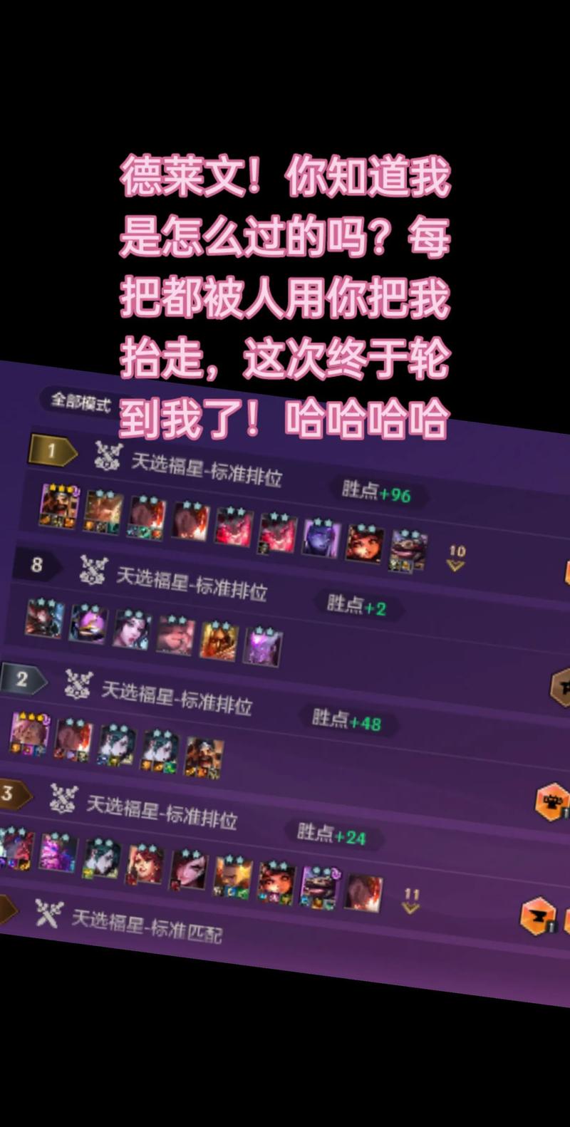 〖Three〗、德莱文:无火炮时站倒数第二排,避免被集火;有火炮可站最后一排远程输出。前排:人马、芮尔、泰坦分散站位,分散敌方火力。站位核心:保护德莱文输出环境,同时利用佛耶戈与锤石限制敌方核心。运营思路 前期:以破败军团过渡,优先凑齐3破败(德莱文、锤石、人马),搭配2重骑兵或2骑士提升坦度。