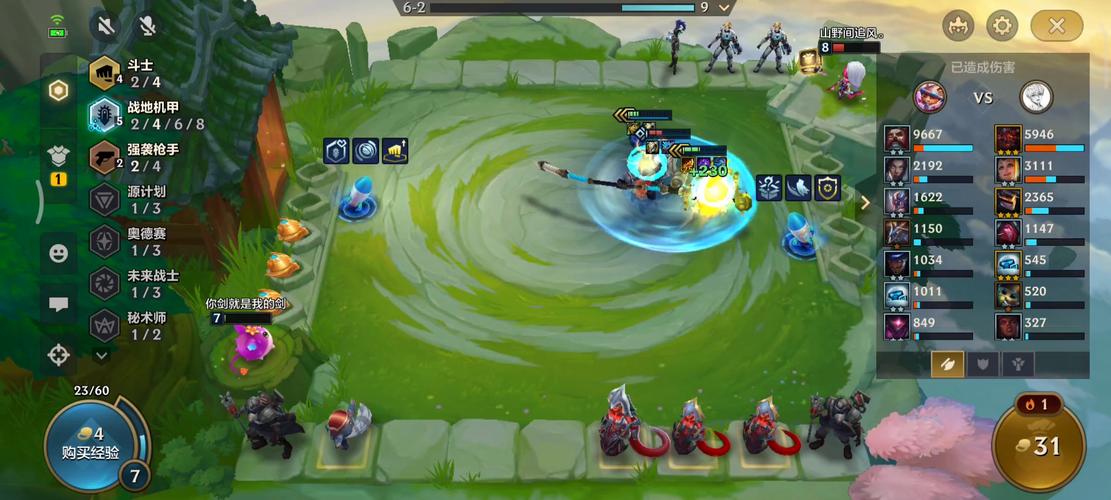 〖Four〗、金铲铲之战s14战地机甲羁绊效果如下:主要羁绊效果 伤害触发导弹:【战地机甲】英雄们每造成500点伤害,就会向附近的一名敌人发射一颗导弹。这颗导弹会对目标造成魔法伤害。伤害转化:战地机甲羁绊还拥有一个特殊的机制,即8%的承受伤害会被计入造成的伤害中。