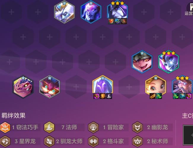 〖Two〗、神龙尊者(亚索/卡尔玛):增强生存和输出。 护卫/秘术(石傲玉/巴德):补充前排坦度和魔抗。阵容构成主C英雄霞(3费):装备:死亡之刃(金鳞龙专属)、巨人杀手、无尽之刃/飓风。 定位:物理输出核心,优先追三星。佐伊(4费):装备:蓝BUFF、珠光护手、科技枪。