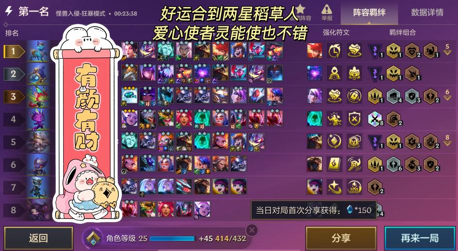 〖Five〗、在游戏初期,优先获取攻速装备,合成羊刀或分裂箭,以提升阵容的输出能力。可以使用赏金斗士枪进行过渡,如果条件允许,也可以使用斗士枪或EZ等英雄进行替代。在玩赏金时,不要过于贪心,适时地用斗士锁血,以确保阵容的稳定性。