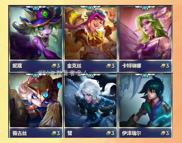 战神盖伦:近战输出型英雄,兼具高攻击力与生命值。技能可对周围敌人造成伤害并短暂眩晕,适合前期稳定输出。邪恶小法师:法师羁绊核心,技能伤害极高且击杀敌人后叠加法术强度,后期具备爆发能力。安妮:技能召唤提伯斯,作为强力输出单位参与战斗。诺手:技能造成真实伤害并回血,团战中生存与输出能力突出。