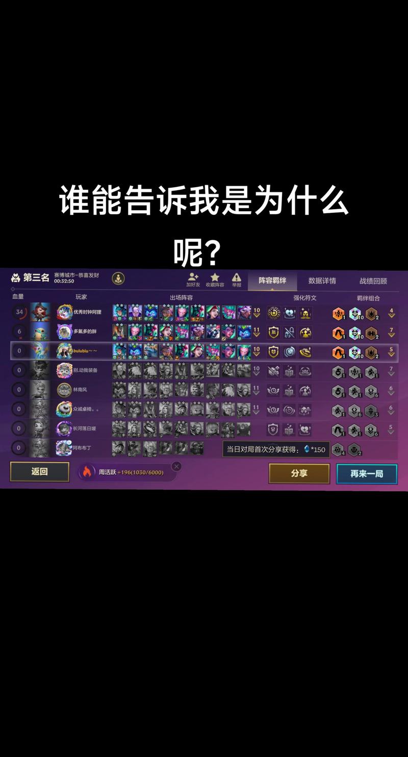 〖Two〗、种族羁绊效果详情:约德尔人:友军获得15%×星级的攻速加成,且可升至4星并获得技能升级。皮尔特沃夫:输掉战斗时,【霸王海克斯机甲】充能;赢下战斗时释放能量,提供强化效果。艾欧尼亚:弈子获得独特属性加成,每4秒部分弈子进入灵体形态,获得30法力值且属性翻倍。
