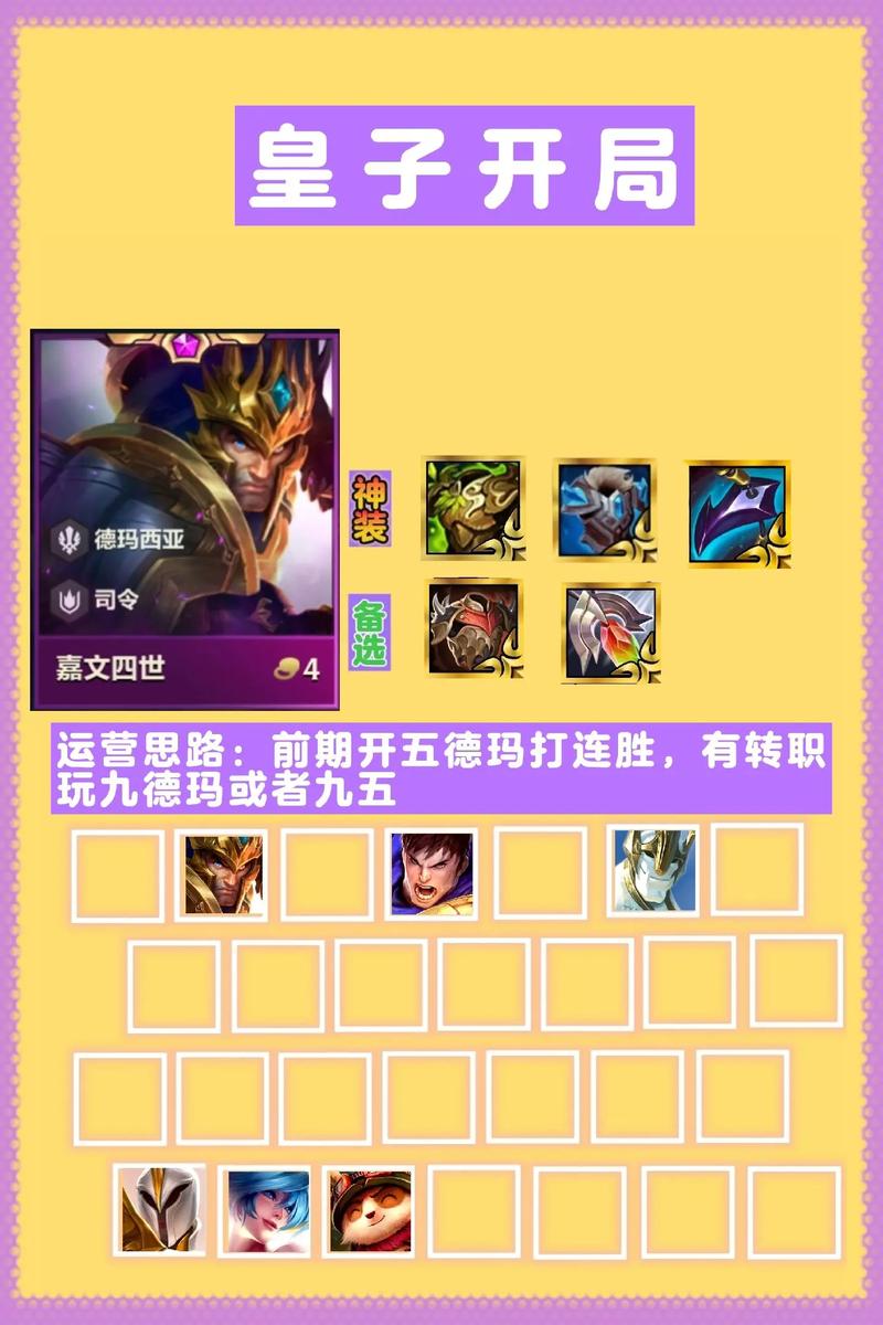 〖Three〗、主要英雄:赛娜(核心)、蕾欧娜、布隆等护卫英雄,以及泽丽、厄斐琉斯等炮手英雄。最终阵容:四护卫+四强袭炮手。如果可以升到九人口,可以补巴德和索拉卡,或者用二星泰拉+二护卫作为阵容前排。装备推荐 优先装备:无用法棒或反曲之弓,用于合成鬼索的狂暴之刃或最后的轻语。