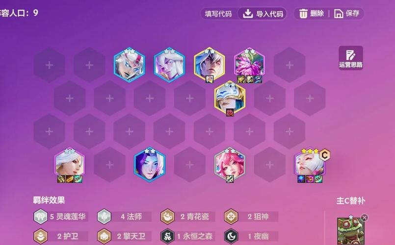 〖Two〗、阵容组成 该阵容由阿狸、千珏、纳尔、锤石、奥恩、辛德拉、安妮、沙皇和瑟提组成,能够触发5灵魂莲华、4永恒之森、2法师、2护卫、2神谕者和2擎天卫的羁绊效果。这样的组合在新赛季中非常适合上分。