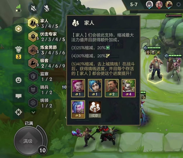 双城传说2金铲铲中的羁绊包括家人、执法官、炼金男爵、蓝发小队、极客、征服者、皮城学院、试验品、黑色玫瑰、外交官、野火帮等。家人羁绊由爆爆、蔚奥莱、范德尔等棋子构成,他们会彼此支持缩减最大法力值并获得额外加成,如伤害减免和攻速加成。在战斗中,这能够帮助他们更频繁地使用技能,同时减少受到的伤害。