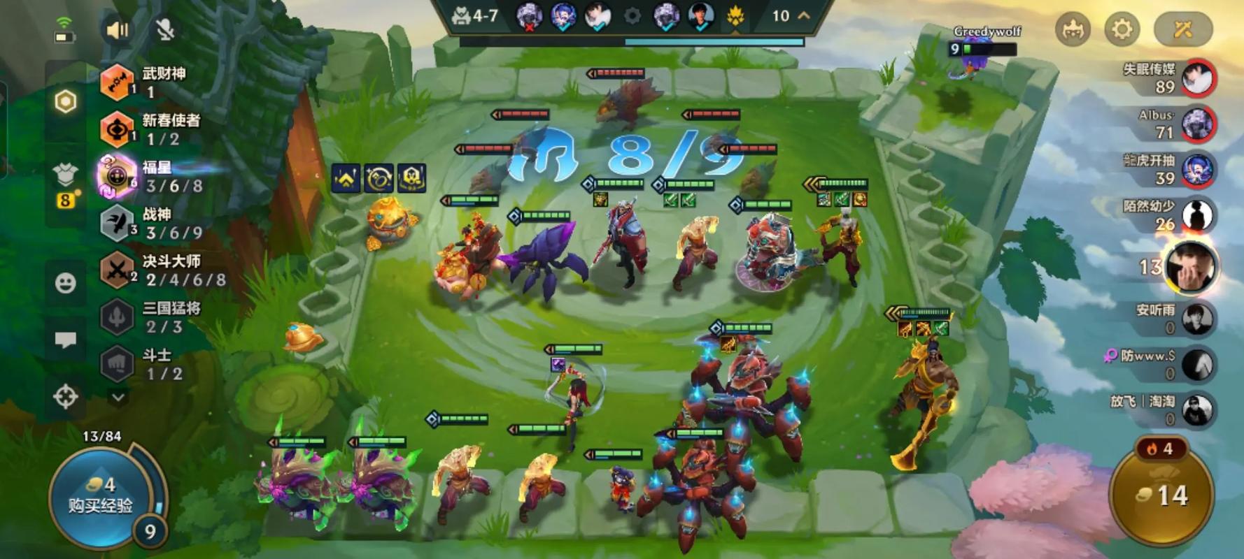 阵容组成:该阵容由乌鸦、盲僧、卡尔玛、寒冰、瑟提、妮蔻、霞、亚索组成,以盲僧为核心输出。装备搭配:盲僧必备装备为饮血剑和珠光护手(法爆),第三件装备可选取无尽之刃、巨人捕手或蓝buff。妮蔻则作为前排坦克,装备狂徒、日炎、石像鬼板甲、救赎、离子火花等肉装。