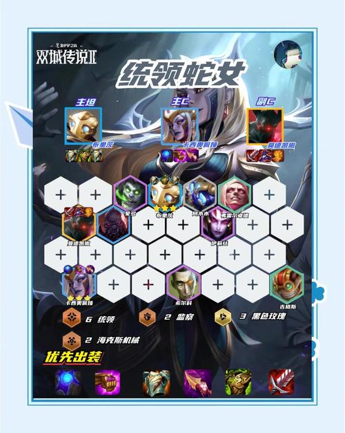核心输出:赛芬,推荐装备为火炮(鬼索的狂暴之刃)、科技枪、泰坦的坚决,选秀时优先为其合成装备。运营过渡策略:前期锁血:用3玉龙+2护卫+2迅捷射手过渡(塔里克、锤石、卡尔玛、艾希、伊泽瑞尔),这些英雄均为低费卡,易于获取。