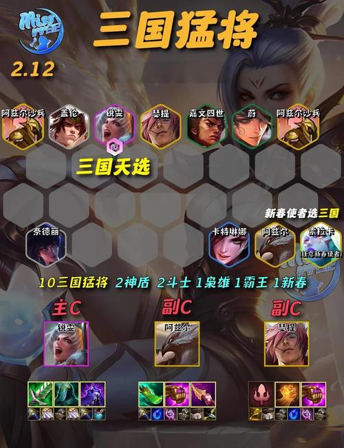 六骑天使 核心羁绊:六骑士与三神使。六骑士提供高额的格挡减免,而三神使则能加快技能释放速度。核心英雄:凯尔(天使)作为主C,装备羊刀、正义之手和水银,以快速攻击并免疫控制。盖伦作为前排坦克,装备反甲、龙牙和狂徒。阵容优势:成型后坦度与控制兼备,天使的高额输出能迅速清理敌人。