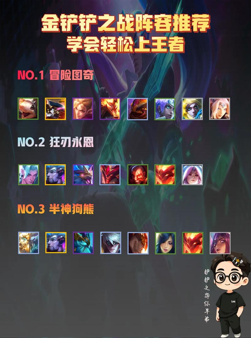 〖Five〗、驯龙高手阵容 核心思路:利用驯龙大师和龙族的羁绊,快速召唤出强大的龙魂,形成强大的战斗力。关键英雄:赛娜、艾希、崔丝塔娜等驯龙大师,以及诺姆希等龙族英雄。装备推荐:优先给核心输出英雄如赛娜或崔丝塔娜配备攻速和攻击力装备,如无尽之刃、最后的轻语等。