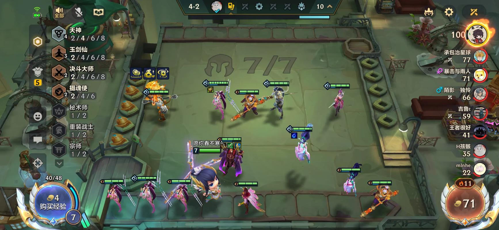 〖Four〗、金铲铲之战s11画中灵天使阵容攻略 阵容成员与站位 阵容成员:盖伦、锐雯、加里奥、猴子、李青、洛、佐伊、婕拉、希维尔、天使、刀妹。站位建议:刀妹站角落,以便天使为其提供攻速加成。天使作为主要输出点,应置于安全位置,希维尔紧邻天使以提供额外攻速。