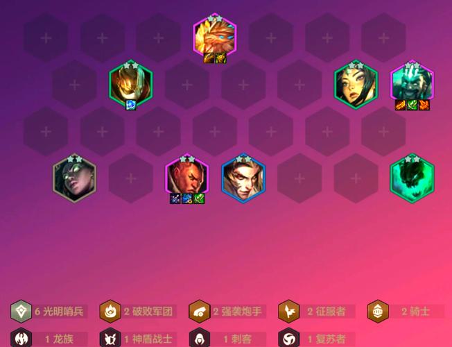 〖Six〗、阵容分析:前期尽量用强势棋子与羁绊打工,保证打工棋子2星,确保血量的健康,7与8阶段开始转型,找核心卡。『2』阵容主要由以下羁绊组成。『3』海克斯:优先海克斯转职和粉碎器,没有的话续航类、经济类也可以考虑。