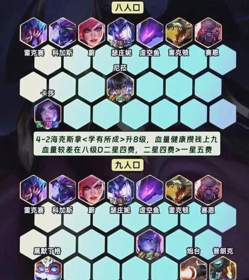 阵容搭配 4术士4法师阵容:七人口即可成型,搭配3德玛西亚(如嘉文四世)以增强整体战力。此搭配能让维克兹获得额外的两次施法机会,极大提升其输出能力。6法师2术士阵容:搭配提莫和2司令,虽然维克兹的额外施法机会减少,但整体战力更强,尤其是主坦斯因和四费拉克丝能享受到更多的法强加成。