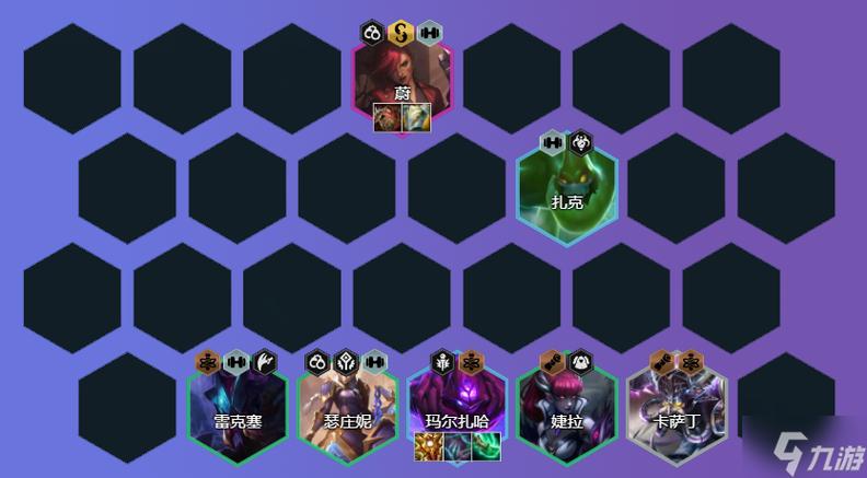 一般来说,如果前期连胜非常多的话,是可以冲击九人口的,这样刷出阿卡丽的概率就非常高,然后再多配几个五费英雄。如卡萨、维克托、金克丝、塔姆……有一次,本人在只有一星阿卡丽的情况下,打赢了有三费塔姆的九五阵容。阿卡丽推荐装备:蓝霸符、无尽之刃、离子火花。