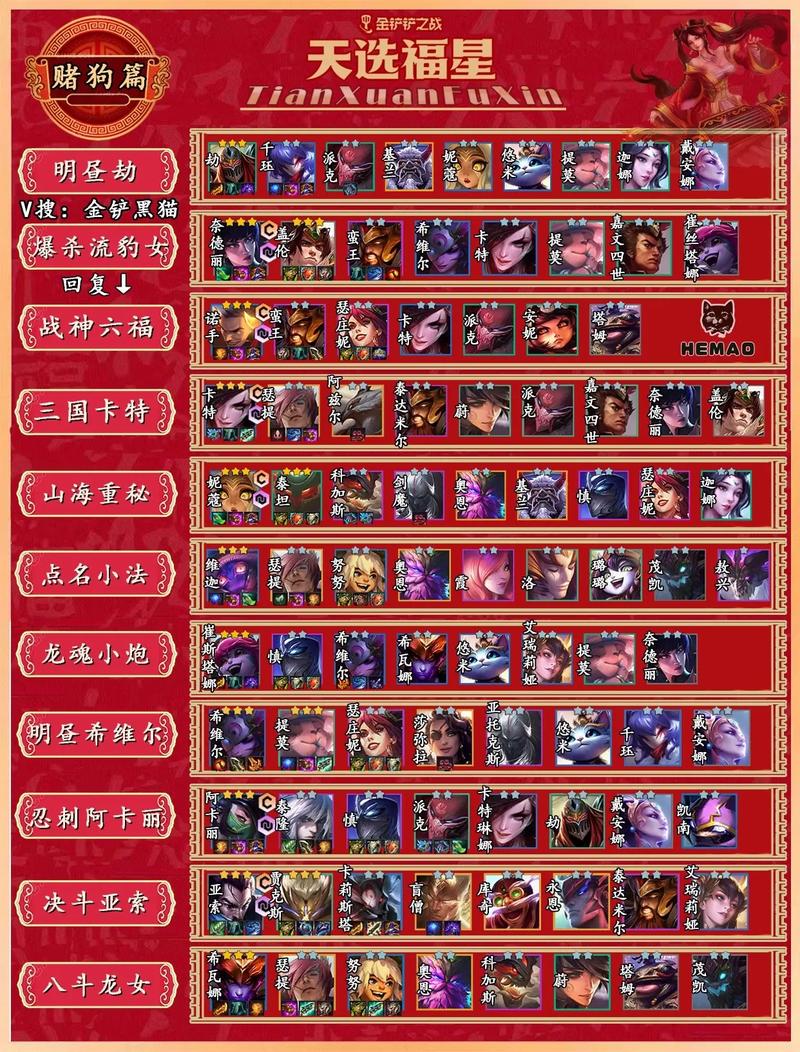 〖Two〗、福星天选阵容:核心英雄如“天雷劫”或“疾风剑豪”亚索,搭配具有高爆发能力。辅助英雄如“凛冬之怒”瑟提和“暴走萝莉”金克丝,提供控制或治疗能力。激活福星羁绊以获得额外金币收益,快速升级和购买装备。后排刺客前排宗师阵容:后排五个刺客,前排三个宗师。泰隆必备正义之手,其他装备可以灵活搭配。