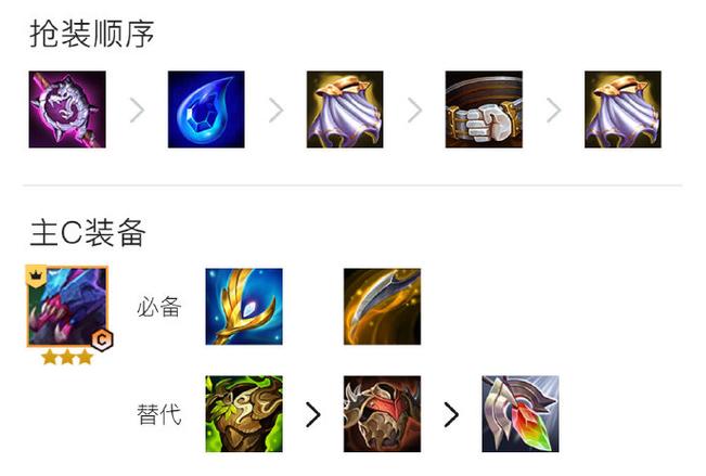〖One〗、狐狸:提升法强的装备例如大帽、复活甲提升容错率,回蓝装备如青龙刀、大天使。大虫子:鬼书、复活甲,第三件选取提升坦度的装备;虚空斗法是游戏中非常强势的阵容,但同时对于英雄星级以及装备的要求也比较高,否则可能会面临前排扛不住伤害导致C位没有输出环境的情况出现。