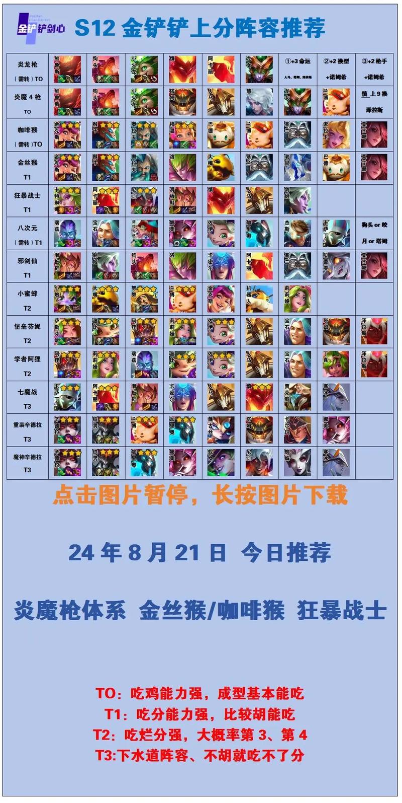 金铲铲之战14版本最强阵容推荐如下:第一梯队阵容: 秘术九五:该阵容在当前版本中吃分与吃鸡场次均排名第一,控制、坦度、输出三方面都属于版本天花板,上限非常高,但成型难度大,对前中期运营要求高。