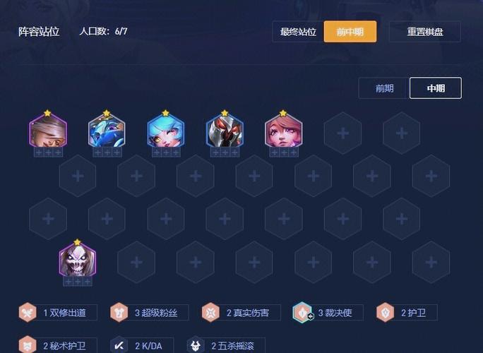 金铲铲之战S10超粉唱跳0阵容搭配方法如下:阵容组成- 核心棋子:佛耶戈、死歌、天使、铁男、纳尔、阿卡丽、妮蔻、莉莉娅、掘墓。羁绊组成- 主要羁绊:7五杀摇滚、3超级粉丝、3KDA、2裁决。