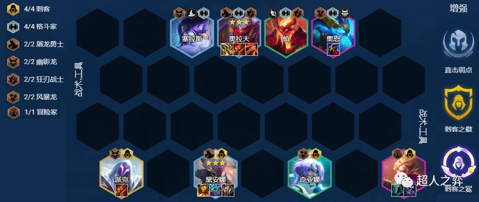 至于慎和奥拉夫要看情况,如果血量不支、后期放弃上9级的话,也可以追3星,否则就只拿永恩和雪人。到4阶段左右,拿到3星永恩直接拉人口上7级。后期阵容 人马单独站一交,吃伤害趁早启动,慎贴在努努和奥拉夫之间。亚索避开人群,尽量打出单体R,永恩正对主C,迭嘉放在角落。