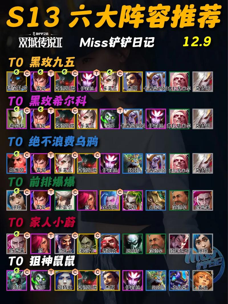 赌狗艾希阵容包括:艾希、布里茨、雷克顿、卡蜜尔、亚索、伊泽瑞尔、薇恩、卡莎,羁绊为4情报特工、3源计划:激光特工、2AI程序、2决斗、2斗士。黑客劫 黑客劫阵容有亚索、艾克、赫卡里姆、瑟庄妮、蔚、劫、薇恩、尼菈、佐伊,羁绊包括4决斗大师、3源计划、2斗士、2秘术卫士、2黑客、2淘气包。