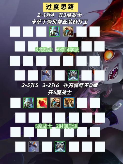 〖One〗、阶段:3-2升6人口,优先补充2刺客+2射手+2布卢姆,同时小搜确保二星图奇和二星后卫,稳定阵容质量。后续搜索三星图奇和三星绽放。4阶段:7人口,优先补维鲁斯,开三个快射手,如果未搜到三星布隆且有布隆同行,可准备补艾达丝。5阶段:8人口,布夏开四速射手,搜索三星戴安娜和三星维鲁斯。