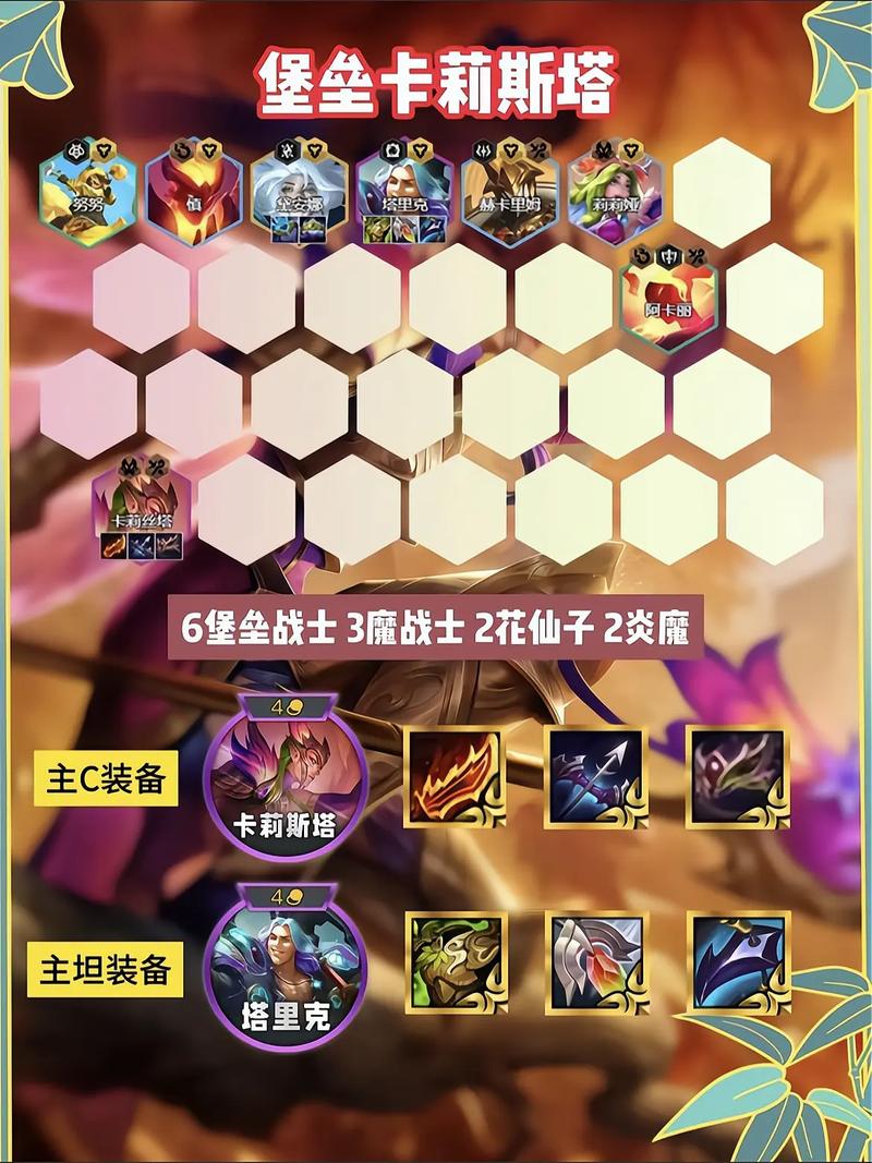 《金铲铲之战》s8版本上分阵容“爱心灵能使”玩法思路如下:阵容组成 安妮、乐芙兰、努努和威朗普、索拉卡、迦娜、娑娜、阿利斯塔、悠米、璐璐。阵容站位 安妮作为主C和主坦,应站在前排,通过叠加法强提升护盾值和恢复量。 后排乐芙兰负责补充输出,后期上9人口后补强高费卡。
