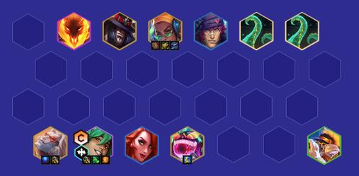〖Two〗、阵容构成:巴德+女枪+瑟提+EZ+锤石+约里克+烬+俄洛伊;阵容羁绊:4大腕射手 2爵士 2格斗 2护卫 2舞者;装备搭配:EZ主c装备带无尽之刃、最后的轻语和蓝buff(备选巨杀、红霸符、青龙刀等)。俄洛伊带肉装前排抗伤。