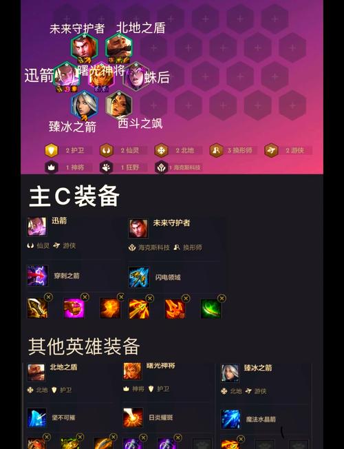 阵容一:重装联盟(Ironclad)核心英雄 卡蜜尔(Cammille)希维尔(Sivir)奥恩(Ornn)额外成员 艾希(Ashe)瑟提(Sett)加里奥(Galio)运行机制 重装联盟阵容主要依赖于强大的前排坦克和高爆发的ADC来造成输出。