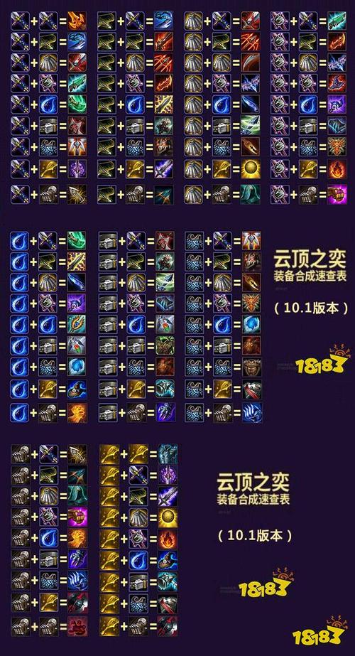 〖Four〗、上图是英雄之黎明的装备合成图,下图是时空裂隙的装备合成图。首先就是护甲+腰带,图上是日炎,但实际是红buff,下方也标注出来了。第二,魔抗+攻速,应该是诅咒之刃,也就是降星刀,而不是飓风,飓风的合成方法是攻速+铲子。蓝+魔抗=离子火花,肃静被移除了。