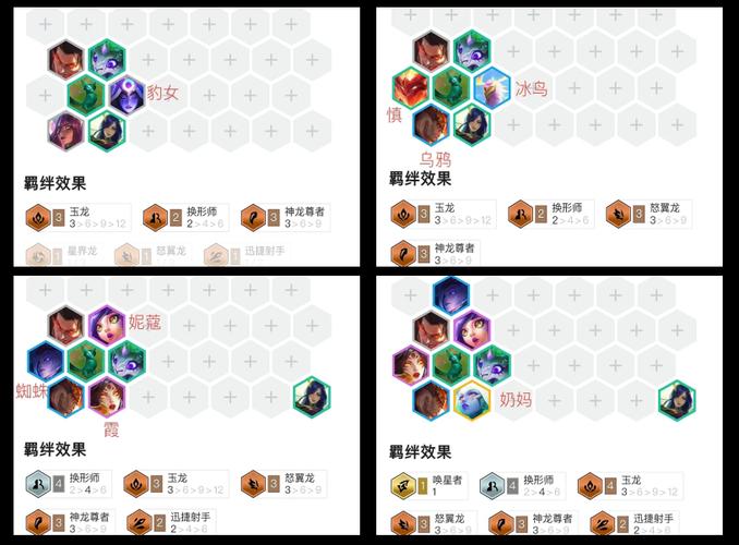 阵容搭配:9玉龙2换形师,羁绊:9玉龙2换形。前期尽量使用强势棋子与羁绊打工,确保打工棋子达到2星,以保持血量健康,顺利过渡到7与8阶段。7与8阶段,逐渐转向以4-5费棋子为核心,低费打工卡则逐渐向高费卡转型。 强化符文分析:优先考虑玉龙类和回复类海克斯,经济类海克斯的优先级也很高。