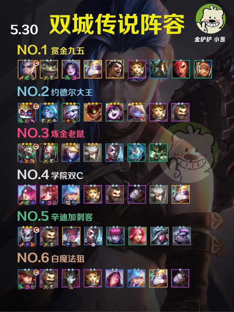 〖Four〗、《金铲铲之战》双城之战阵容是:学院永恩、八五格斗枪、黑白法。学院永恩 学院永恩是现在主流的上分阵容,通常是4学院或6学院搭配2挑战看情况上白魔法与社会名流,阵容看似需要的高费卡较多,但只要永恩能早二星,吃分就比较稳定。运营难度不高,比较简单无脑。