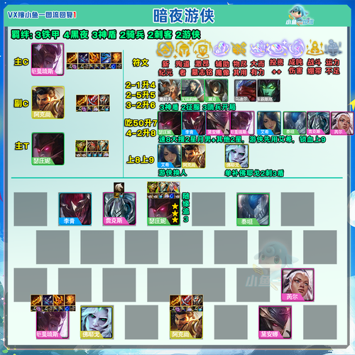 〖Four〗、金铲铲之战中的黑夜使者阵容是一种极具特色的搭配方式。在这篇文章中,我们将探讨如何构建一个包含黑夜使者羁绊的强力阵容。首先,我们需要了解这个阵容的英雄构成与羁绊组成。阵容中的主要英雄包括:沃利贝尔、弗拉基米尔、李青、瑟庄妮、厄斐琉斯、艾翁、亚索和戴安娜。