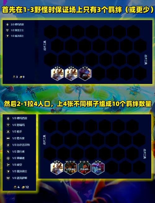 -2升6人口,根据自身情况调整阵容,建议2斗+2灵能+2爱心+2射手。若3-2符文有加注,经济将显著提升。4-1升7人口,搜索崔斯特与佛耶戈,开启4灵能+4福牛阵容。面对高频率的同行,提前抢卡是关键,8人口时应迅速搜索。4-5或5-1升8人口,添加艾克以提升妮蔻的输出效率与阵容的坦度。
