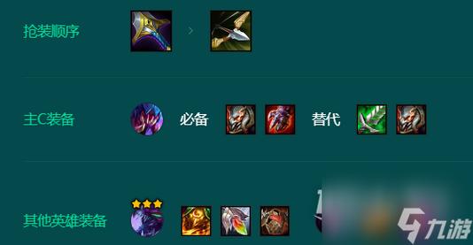 每一局的变异战士效果都在变化,这次是超级肾上腺,因此可以考虑玩肾上腺大虫子。阵容配置为5变异2巨像2格斗,包括大虫子、加里奥、卡莎、玛尔扎哈、蒙多和大嘴。装备选取方面,科加斯是必备卢安娜的飓风,因为能够打击对面后排脆皮C位,优先级比较高。其次推荐饮血剑,既能物理回血还能有护盾防止暴毙。