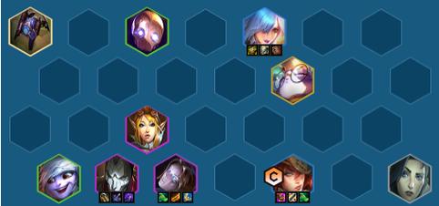 金铲铲之战卓尔不群妮蔻攻略卓尔不群的阵容运营相对简单,谁质量高就上场!后排这里推荐赛娜、韦鲁斯这种比较吃攻速的英雄,前排可以用格斗+护卫的混合组合方式,前排虽然不吃攻速,不过前期还是尽量不要凑出羁绊,因为卓尔不群也会增加不少血量,前期还是很有用的。