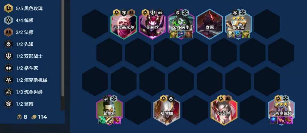 《金铲铲之战》双城之战上分阵容是:永恩、菲奥娜、泰隆、奎因、莎弥拉、斯维因、卡蜜尔、沃里克、布隆。纯粹围绕莎弥拉而展开的羁绊, 这套阵容对转职的需求很高,有一个合适的转职便可以大大提高阵容后期上限,可以做的转职有挑战转,帝国转,但是转职的优先级是一定没有莎弥拉神装的优先级高的。