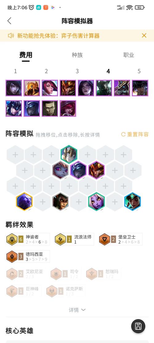 阵容组成:内瑟斯、弗拉基米尔、莫甘娜、斯维因(4摄魂使)、贾科斯、艾瑞利亚、李青、慎、风女/基兰,阵容羁绊:4摄魂使4天神2宗师2秘术2决斗2玉剑1忍者。