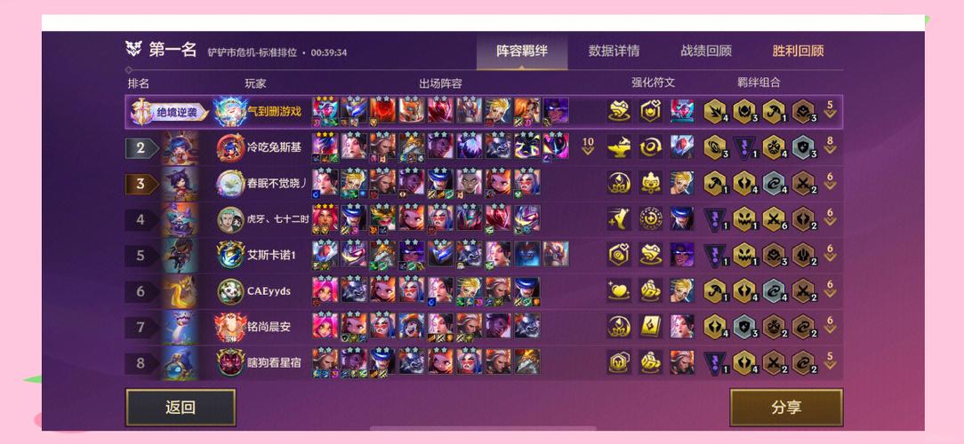 〖Two〗、优先考虑“平民/枪手徽/冕”、“组件百宝袋”、“复苏之风”。棋子专属符文方面,考虑“无尽披萨”和“拳击课程”。2-1级升4,2-5级升5级人口,过渡阵容选取强度高的棋子,如2护卫/2格斗+后排输出。装备分配 主C推荐莎弥拉或厄斐琉斯,其中厄斐琉斯在2星后强度显著提升,且具有控制能力。