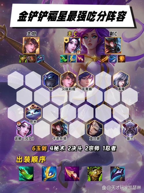 金铲铲之战无敌仙灵玩法攻略:核心思路:无敌仙灵是一个转型极快且容错率低的阵容,适合喜欢无脑上分的玩家。英雄选取:核心输出:火男,法系装备无脑给他,二星越多越好;剑魔,一定要配个水银,优选科技枪,其他装备随意。次要核心:莫甘娜,全肉装放最前面,可以考虑水银或女妖。