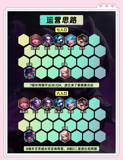 阵容组成:艾希、丽桑卓、阿克尚等。核心装备:阿克尚:无尽之刃+锐利之刃+破防者。运营思路:以阿克尚为核心输出,配合厄加特和瑟庄妮等前排坦克,提升整体输出和坦度。堡暗卡莉斯塔阵容:阵容组成:茂凯、索拉卡、塔里克等。核心装备:卡莉斯塔需要双羊刀。